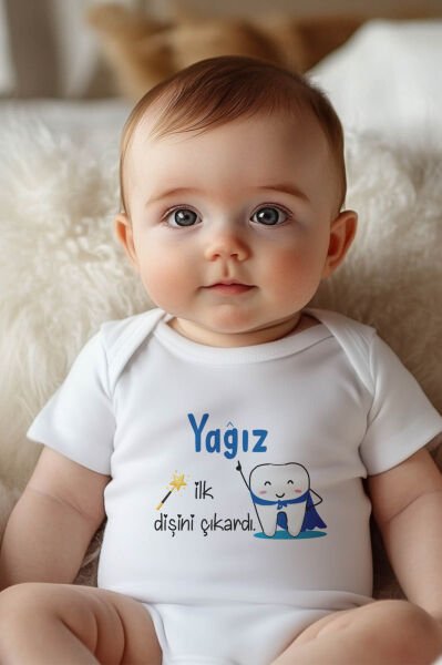 İlk Diş Çıkarma Erkek Kısa / Uzun Kol Çıtçıtlı Bebek Body