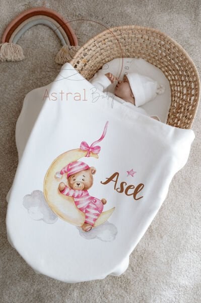 İsimli %100 Organik Pamuk 12'li Hastane Çıkışı Pembe Ayıcık